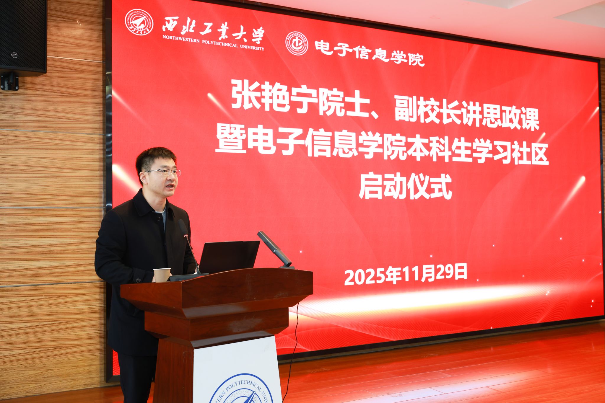 11月29日上午,副校长张艳宁院士为电子信息学院师生讲授题为“社会主义现代化建设的教育、科技、人才一体化推进”的思政课,并与所联系的本科生08062314班级座谈交流。学院领导班子、理论学习中心组成员及180余位师生代表聆听思政课。活动由学院党委书记侯俊主持。
