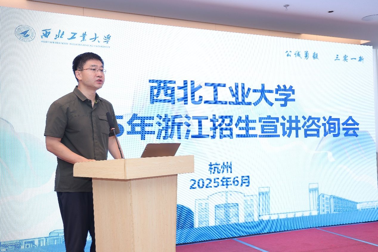 杨益新在致辞中对前来参会考生和家长表示热烈欢迎。他回顾了西工大与浙江省的深厚渊源,高度肯定了浙江省生源质量,表示西工大秉承总师育人文化,将提供最优质的教育资源和培养体系,助力学子成长为“专业精、系统强、能担当”的栋梁之才。他诚挚欢迎浙江学子报考西工大,在“总师摇篮”实现人生理想。